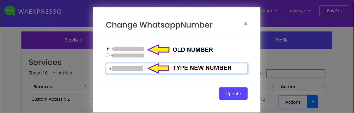 - You can now select the number you want to replace with and type in the new number. Please note that you can change your number only once in 30 days.