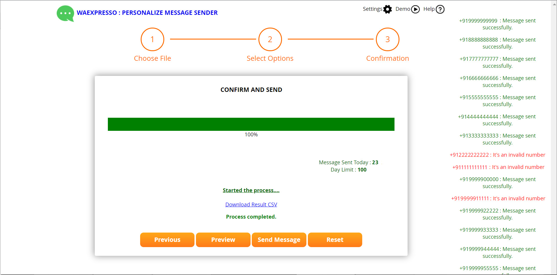 - You can see the result of messages sent below on the same page or in a new tab as per the case.