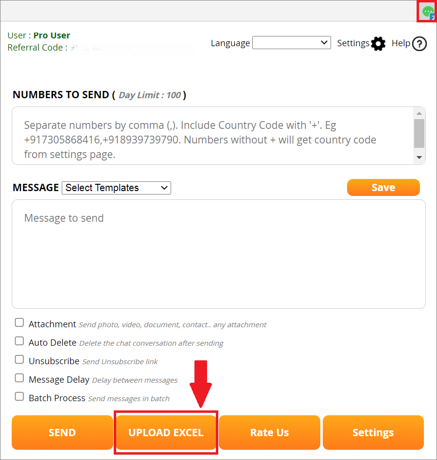 - Click on the WAExpresso icon and then click on UPLOAD EXCEL button.