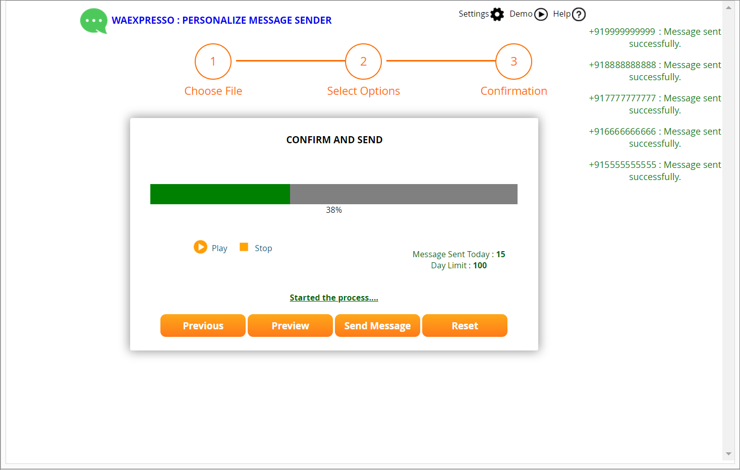 - Now click on the WAExpresso icon and type the list of Whatsapp numbers, message and click on the Send button.