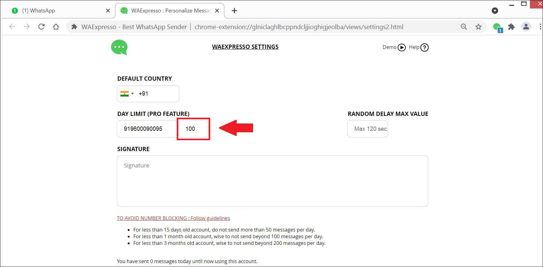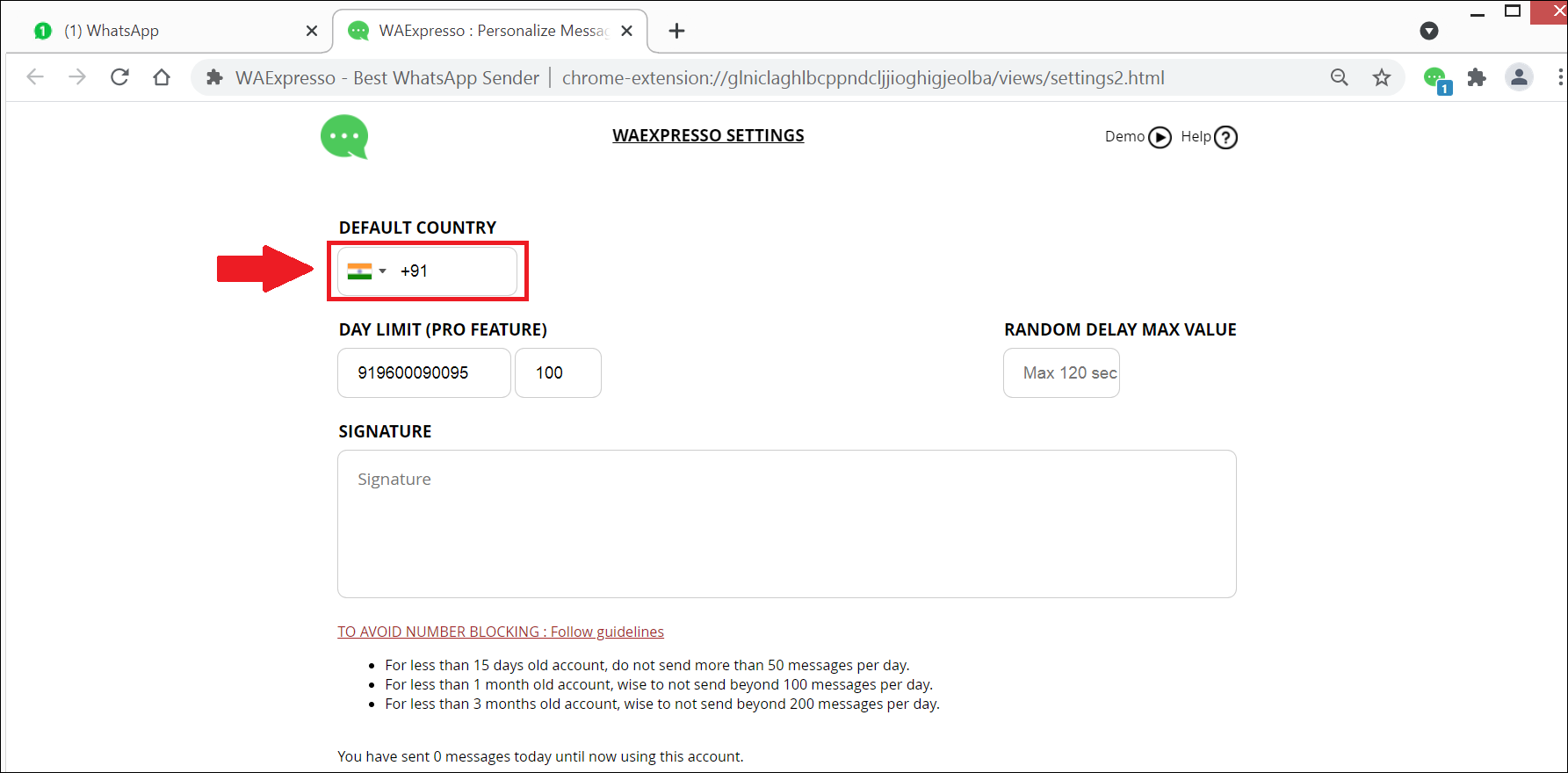 - Set a Message signature, which will be sent with any message you send from WAExpresso