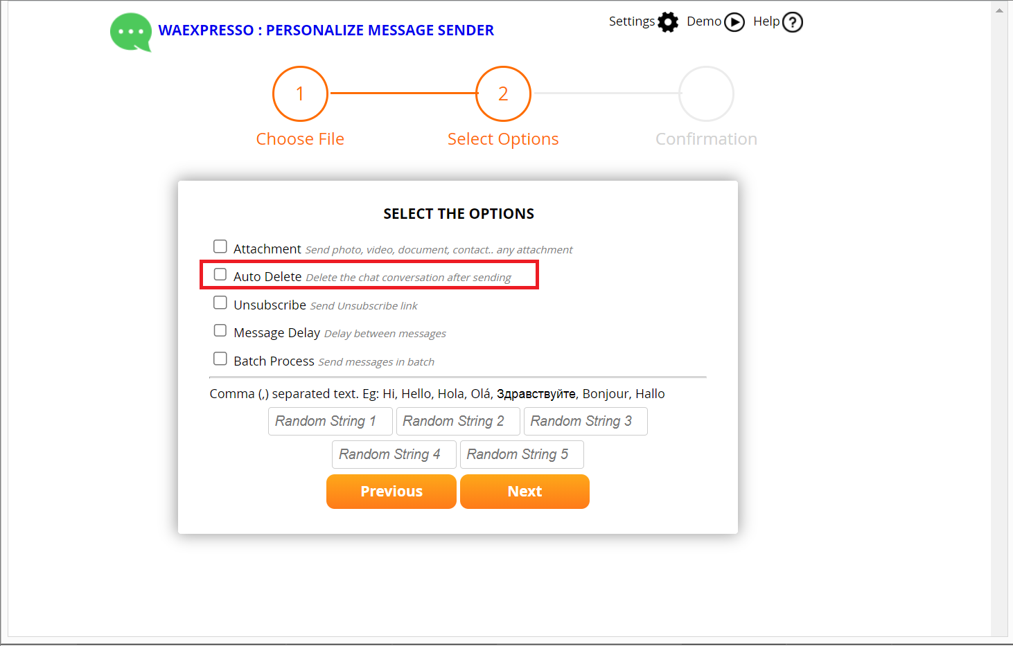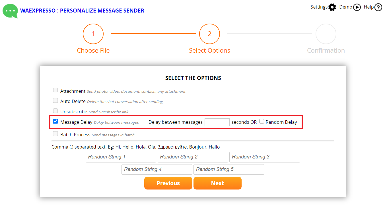 In case you want to give a different delay for each message check the 'Random Delay' checkbox.